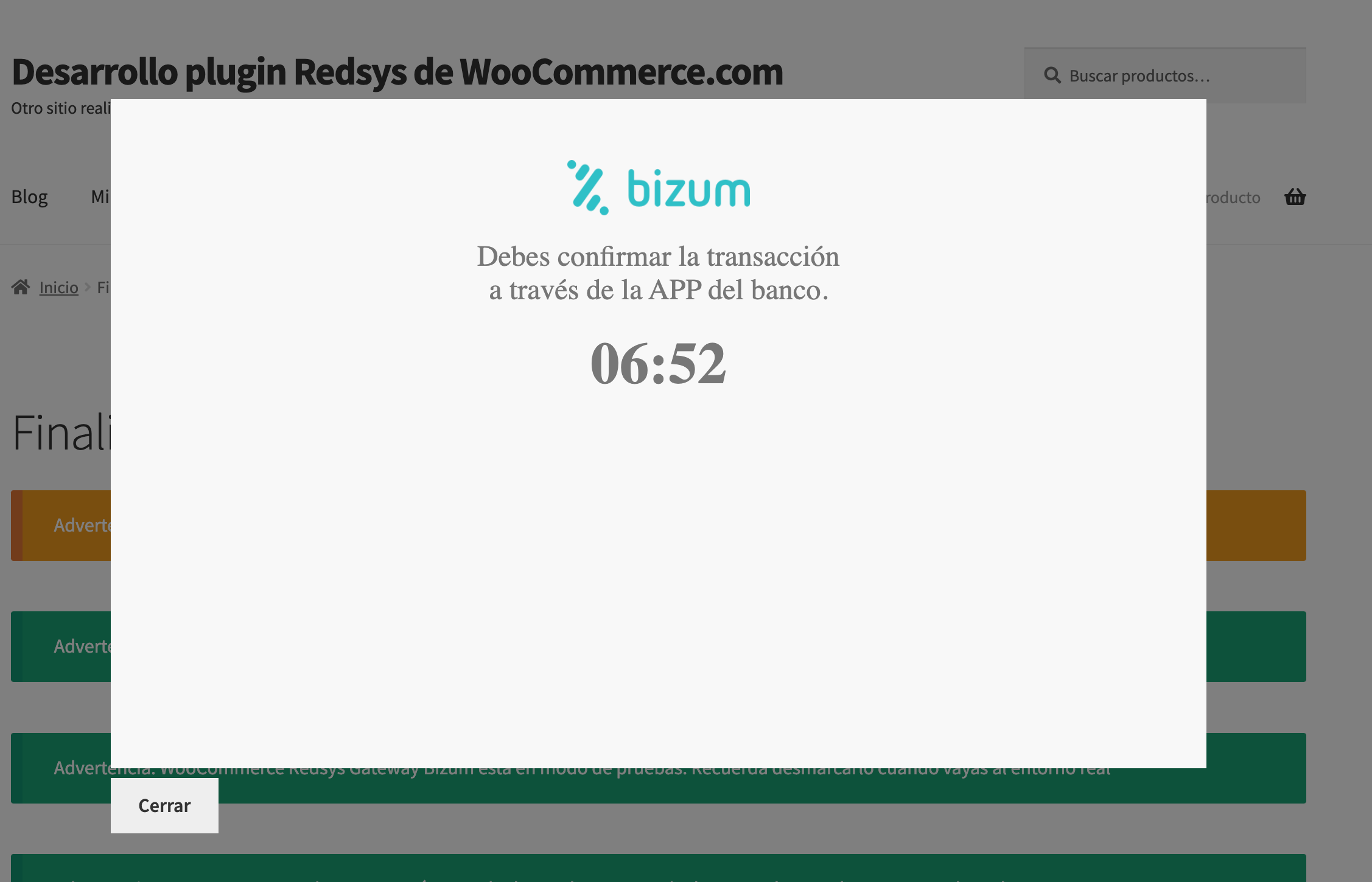 Bizum can be found in the plugin in two different ways. One is a redirection, the classic one, and the other is without leaving the site. The option without leaving the site is by far the best way to have Bizum. The customer will enter their phone number on the payment page, and without leaving the site, they must accept the transaction in their mobile APP. It detects if, for example, the customer does not have Bizum, so no customer without Bizum will reach this point, and you will not have cart abandonment.